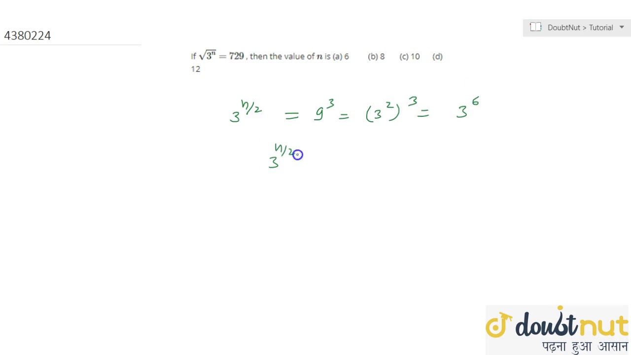 If Sqrt 3 N 729 Then The Value Of N Is A 6 B 8 C 10 D 12 Youtube